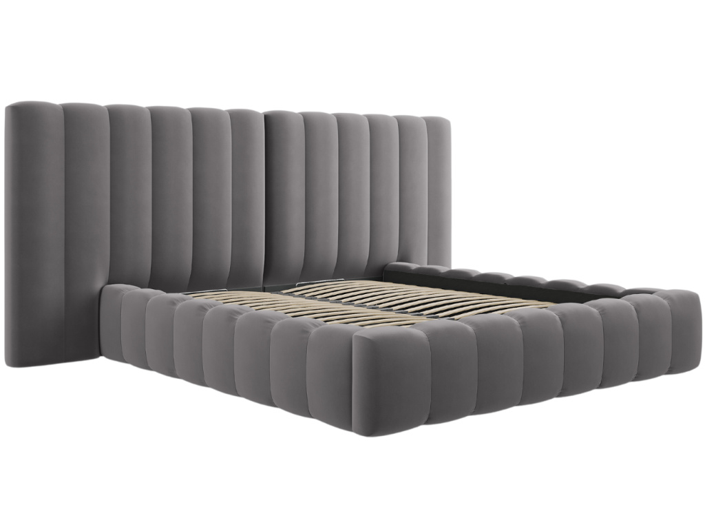 Moderní design dvoulůžkové postele Kelp v sobě spojuje decentnost a funkčnost. Čalouněné čelo s viditelným prošíváním nejen zpříjemní váš odpočinek, ale zútulní i vaší ložnici. Celá konstrukce je čalouněna látkou imitující samet s mírným leskem, která vykazuje vysokou odolnost proti oděru. Součástí postele je úložný prostor, díky kterému už nikdy nebudete přemýšlet, kam uložit lůžkoviny nebo sezónní oblečení. Postel je v nabídce v sametovém nebo čalouněném provedení s užším nebo širším čelem. Dodává se ve třech standardních rozměrech, ke kterým je možné dokoupit matrace od značky Micadoni. Vyberte si ideální rozměr do vašeho interiéru!