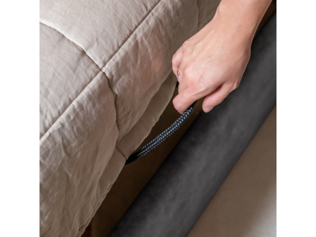 Dvoulůžková postel Dreamy Aurora od značky Miuform vás dostane svým designem díky geometrickému čelu. Hebká sametová látka dodá posteli na vznešenosti a eleganci a zdůrazní její komfort. Díky měkké pěnové výplni si užijete pohodlí, ať už budete klidně spát nebo si číst oblíbenou knížku. Postel disponuje rozlehlým úložným prostorem na polštáře a přikrývky, do kterého se snadno dostanete díky popruhu na přední části.