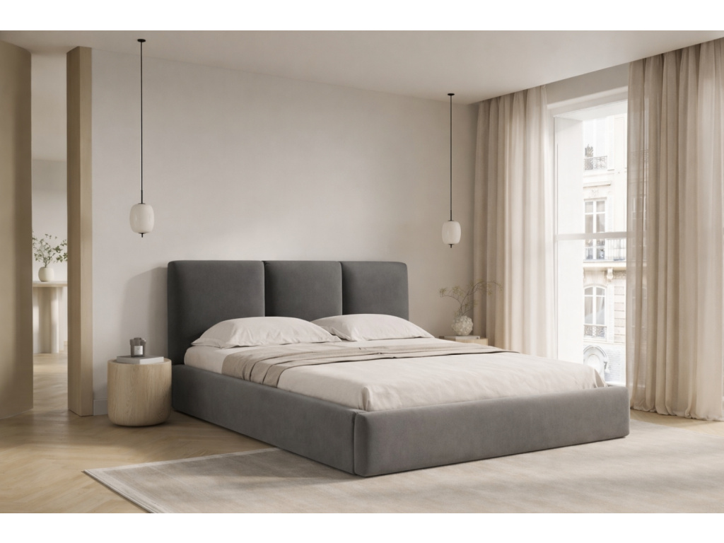 Relaxujte a užívejte si pohodlí ve dvoulůžkové posteli Horizon od značky Windsor & Co. Měkké čelo s elegantním designovým prošíváním zajistí příjemný vzhled postele, a navíc vám poskytne oporu při sledování televize nebo čtení knih a časopisů. Její sametové čalounění v šedém odstínu je vyrobeno z tkaniny, která je vysoce odolná proti poškození a zabraňuje pronikání tekutin. Tkanina navíc prošla cigaretovým testem, tudíž je odolná proti doutnání a vznícení. Postel je doplněna úložným prostorem pod oběma lůžky, do kterého můžete vkládat vaše ložní prádlo. Horizon je v nabídce v několika barevných provedení a ve třech standardních rozměrech. Díky tomu si můžete vybrat ideální rozměr do vašeho interiéru.