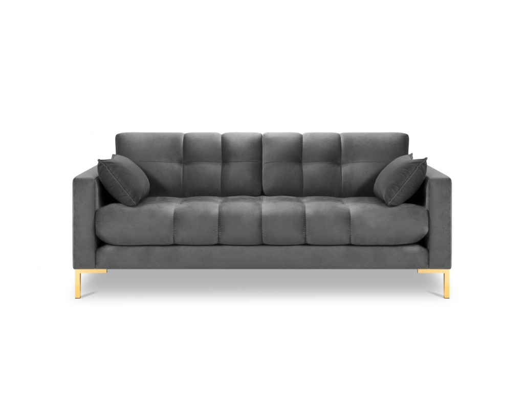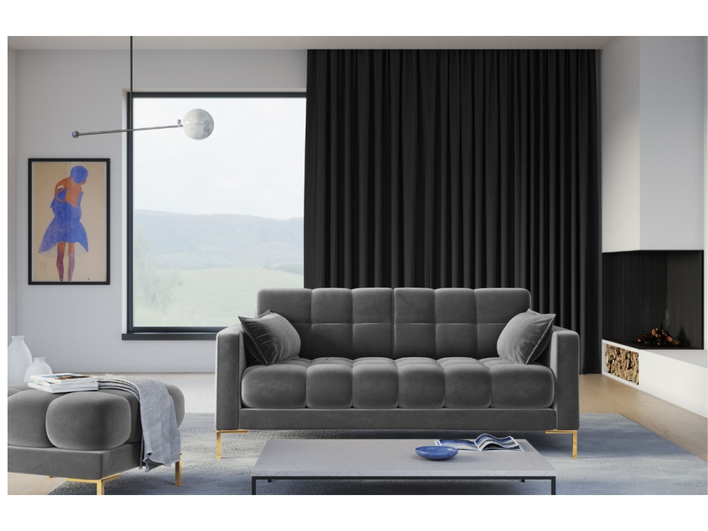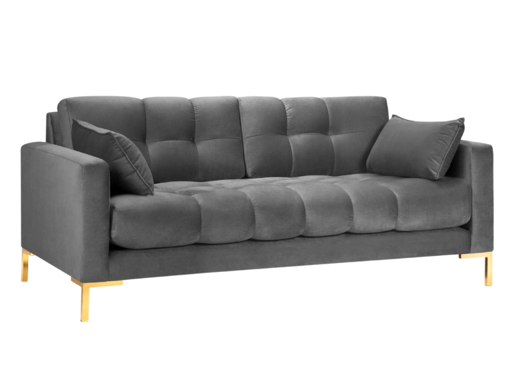 Elegantní dvoumístná pohovka MICADONI MAMAIA zaujme na první pohled svým nadýchaným vzhledem. Velmi příjemné sametové čalounění a zlatá kovová podnož vytváří kontrast, který interiéru dodá elegantní vzhled a nádech luxusu. Díky zajímavému prošívání vzniká jemný design, který do vašeho domova vnese lehkost a styl. Opěrné polštářky zvednou úroveň vašeho odpočinku o stupeň výš. Nechte se obklopit komfortem ve společnosti pohovky Mamaia.