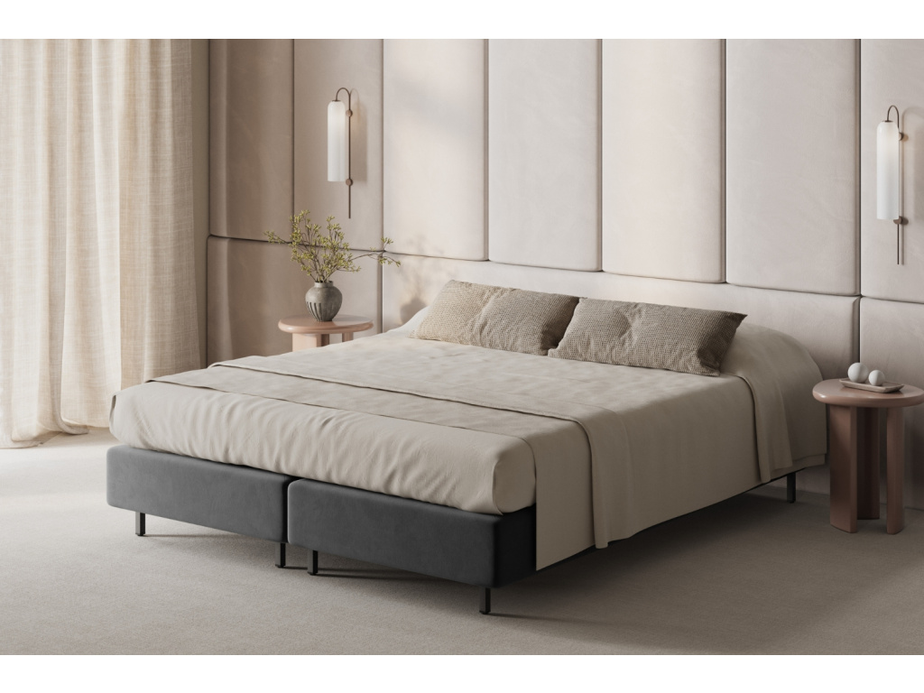 Postel Whale od značky Micadoni je ztělesněním minimalistické elegance a pevného základu pro kvalitní spánek. Čistá, kompaktní silueta bez čela působí moderně a nadčasově, díky čemuž snadno zapadne do různých typů interiérů, od městských bytů až po hotelové pokoje. Její jednoduchost nechává vyniknout prostoru a umožňuje vytvořit ložnici přesně podle vašeho stylu. Čalounění tvoří sametová látka Paris, která okouzlí mimořádně hladkým povrchem a jemným leskem. Na dotek je hebká a příjemně hřejivá, čímž umocňuje pocit útulnosti v ložnici. Látka je vysoce odolná proti oděru a díky svým vlastnostem vhodná i do domácností s domácími mazlíčky, protože lépe odolává zatrhávání. Whale je postel, která stojí na kvalitě, trvanlivosti a estetické čistotě. Představuje nadčasový základ ložnice, kde se design snoubí s klidem a každodenním komfortem. Pozn.: Matrace není součástí postele.