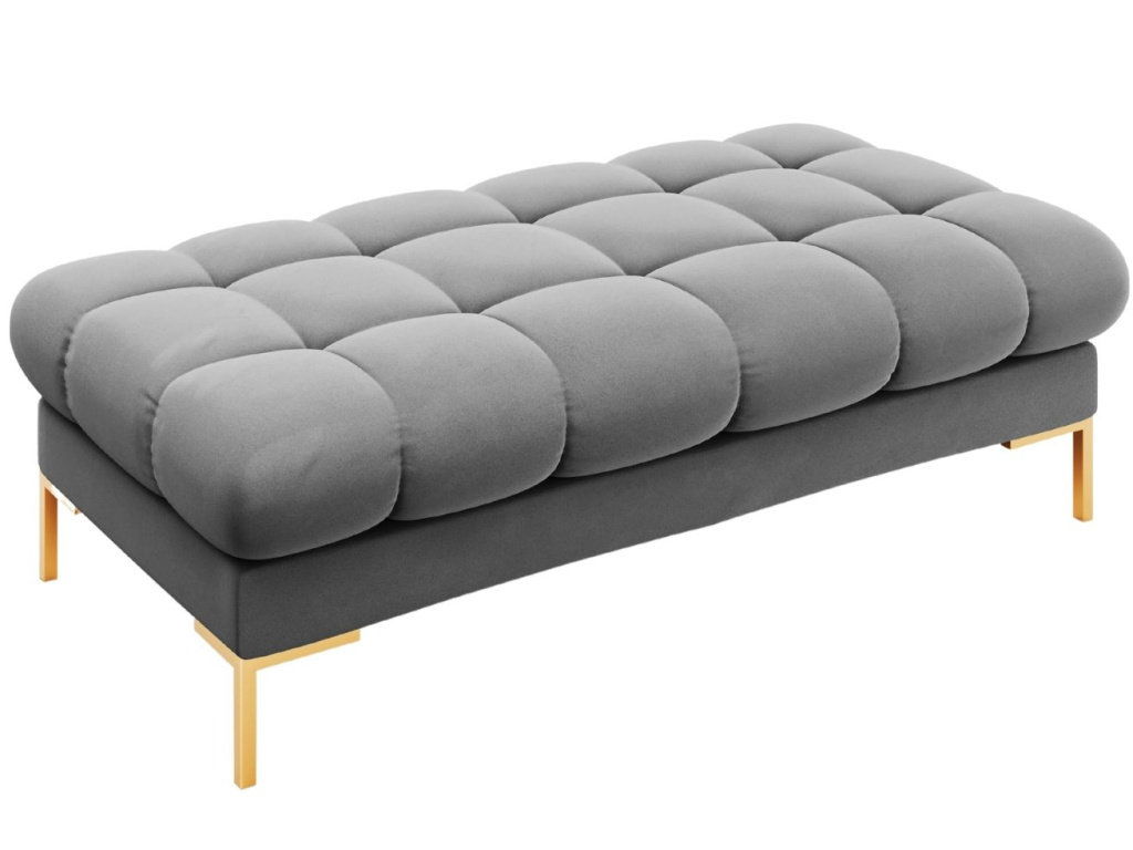 Elegantní lavice Micadoni Mamaia zaujme na první pohled svým nadýchaným vzhledem. Velmi příjemné sametové čalounění a zlatá podnož vytváří kontrast, který interiéru dodá elegantní vzhled a nádech luxusu. Díky zajímavému prošívání vzniká jemný design, který do vašeho domova vnese lehkost a styl. Nechte se obklopit komfortem ve společnosti produktů Mamaia.