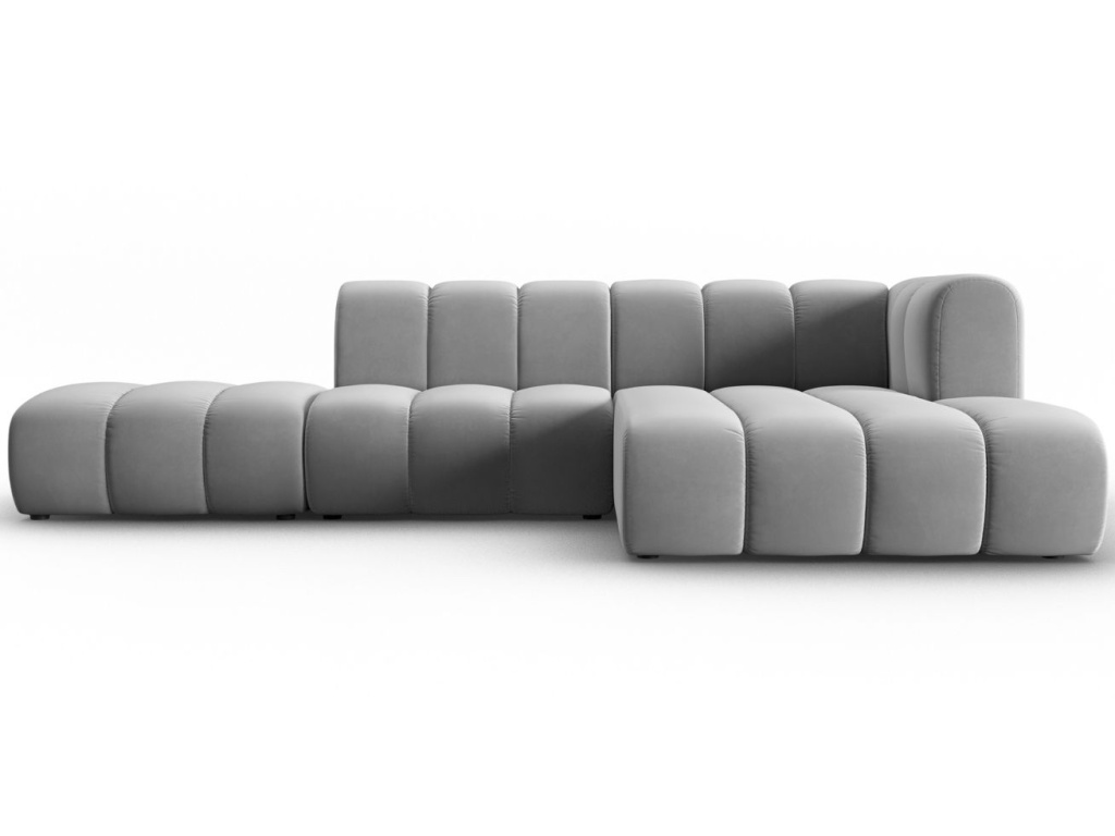 Rohová pětimístná pohovka Lupine vyzařuje elegancí a vybízí k odpočinku, konverzaci a užívání si bezkonkurenčního pohodlí. Design sezení se vyznačuje futuristickým a zakřiveným tvarem, který je čalouněný sametovou látkou. Krásná a příjemná tkanina s decentním leskem vykazuje vysokou pevnost a odolnost proti opotřebení. Navíc obsahuje ochranou vrstvu, která zabraňuje pronikání kapalin do vnitřního materiálu sezení. Kolekce Lupine zahrnuje podnožky a několik variant pohovek, které jsou dostupné v různých barevných provedeních. Díky tomu si můžete vytvořit jedinečnou konfiguraci sezení, která se stane ústředním bodem vašeho obývacího pokoje nebo společenské místnosti.