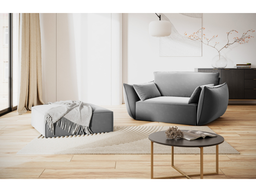 Podnožka Kaelle od značky Micadoni zaujme elegantním provedením. Obdélníková silueta s propracovaným lemováním ji dodává jedinečný vzhled, který činí podnožku ideálním doplňkem do moderního obývacího pokoje. Celý povrch je čalouněn sametovou tkaninou, která působí čistě a luxusně. Tento model lze navíc snadno kombinovat s dalším nábytkem ze stejné kolekce, která je dostupná jak v žinylkovém, tak v sametovém provedení.