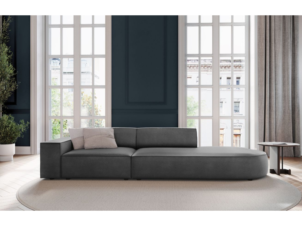 Prostorná modulární trojmístná pohovka Jodie od značky Micadoni zaujme svou krásnou siluetou. Čalounění je vyrobené z tkaniny, která imituje samet s jemným leskem. Látka se vyznačuje dobrou odolností proti oděru, což výrazně snižuje riziko jejího poškození, také prošla testem na cigarety, díky tomu je pohovka vhodná i do komerčních prostor. Její polstrovaný tvar vám zaručí plnohodnotný odpočinek, zatímco hluboký sedák umožní dokonalou relaxaci. Opřít se můžete také o tvarované opěráky a široké područky, které vybízejí k nespoutanému lenošení. Nízká podnož ladí s útulnou siluetou nábytku. Velký výběr modulů vám umožní vytvořit si kombinace, které budou nejlépe vyhovovat vašemu obývacímu pokoji v minimalistickém či skandinávském stylu.