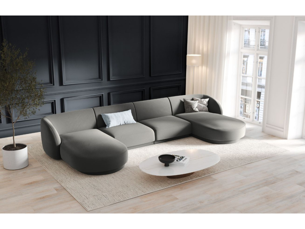 Rohovou pohovku Miley od značky Micadoni si zamilujete! Její obloukovitě tvarované opěradlo vybízí k tomu, abyste se na chvíli pohodlně usadili. Díky mírně zapuštěné základně dodává sezení vznášející se charakter, který dotváří vzhled připomínající oblak. Měkký, odolný a na pohled příjemný samet poskytuje nábytku lákavý vzhled, který vnese do místnosti záři a pocit sofistikovanosti. Pohovka je ideální volbou do interiéru v moderním nebo skandinávském stylu. K pohovce je možné přikoupit další produkty z kolekce Miley. Díky tomu si můžete vytvořit sedací soupravu, kterou je vhodné kombinovat se skleněným nebo dřevěným konferenčním stolkem.