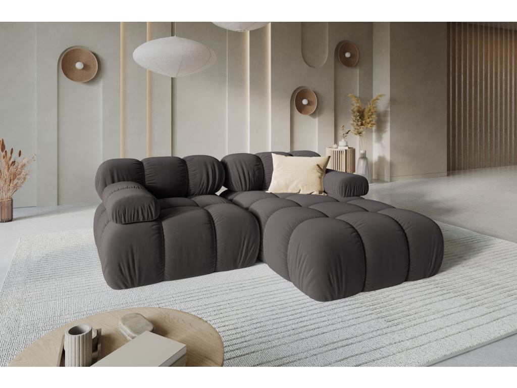 Rohová trojmístná pohovka Bellis spojuje ikonický design s maximálním pohodlím. Její elegantní zaoblené linie a propracované čalounění vdechnou interiéru jedinečný styl inspirovaný retro estetikou 70. let, doplněnou o moderní vzhled. Pružinové moduly zajišťují ideální rovnováhu mezi měkkostí a oporou, takže sezení je pohodlné i při každodenním používání. Pohovka je čalouněna kvalitní tkaninou s jemným leskem, která imituje samet, je hebká na dotek a zároveň odolná proti oděru. Látka splňuje bezpečnostní normy a je vhodný pro dlouhodobé používání. K dispozici je však i v dalších typech látek a barevných provedeních, takže si ji snadno přizpůsobíte svému interiéru. Sezení Bellis promění váš obývací pokoj v elegantní a útulné místo. Pro harmonické doladění doporučujeme pohovku kombinovat s masivním nebo skleněným konferenčním stolkem a jemnými dekorativními polštáři.