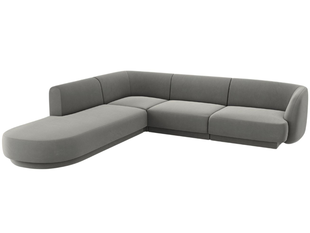 Šestimístnou rohovou pohovku Miley od značky Micadoni si zamilujete! Její obloukovitě tvarované opěradlo vybízí k tomu, abyste se na chvíli pohodlně usadili. Mírně zapuštěná základna dodává sezení vznášející se charakter, který dotváří vzhled připomínající oblak. Měkký, odolný a na pohled příjemný samet poskytuje nábytku lákavý vzhled, který vnese do místnosti záři a pocit sofistikovanosti. Pohovka je ideální volbou do interiéru v moderním nebo skandinávském stylu. K pohovce je možné přikoupit další produkty z kolekce Miley. Díky tomu si můžete vytvořit sedací soupravu, kterou je vhodné kombinovat se skleněným nebo dřevěným konferenčním stolkem.