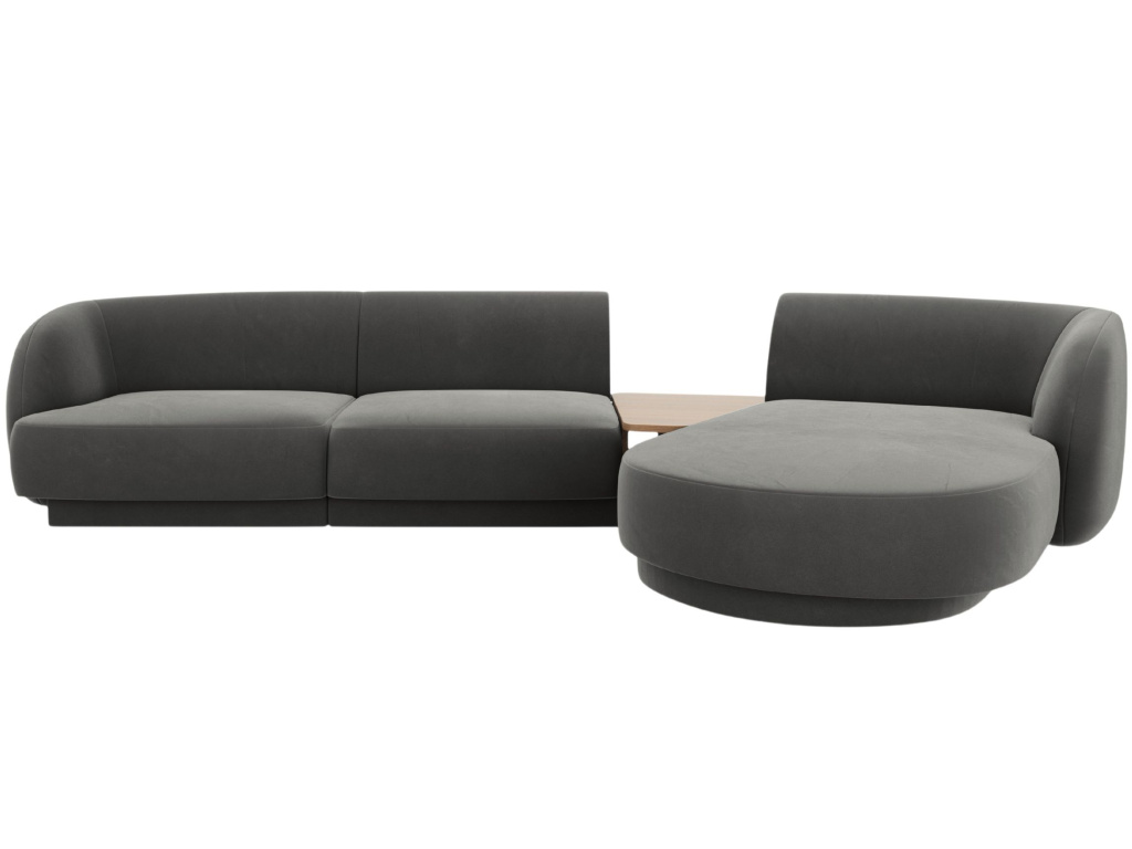 Trojmístnou rohovou pohovku Miley od značky Micadoni si zamilujete! Její elegantně obloukovité opěradlo vás doslova zve k odpočinku, zatímco jemně zapuštěná základna dodává celému kusu vzdušnost a lehkost. Měkký, odolný a na pohled příjemný samet poskytuje nábytku lákavý vzhled, který vnese do místnosti záři a pocit sofistikovanosti. Pohovka je ideální volbou do interiéru v moderním nebo skandinávském stylu. K pohovce je možné přikoupit další produkty z kolekce Miley. Díky tomu si můžete vytvořit sedací soupravu, kterou je vhodné kombinovat se skleněným nebo dřevěným konferenčním stolkem.