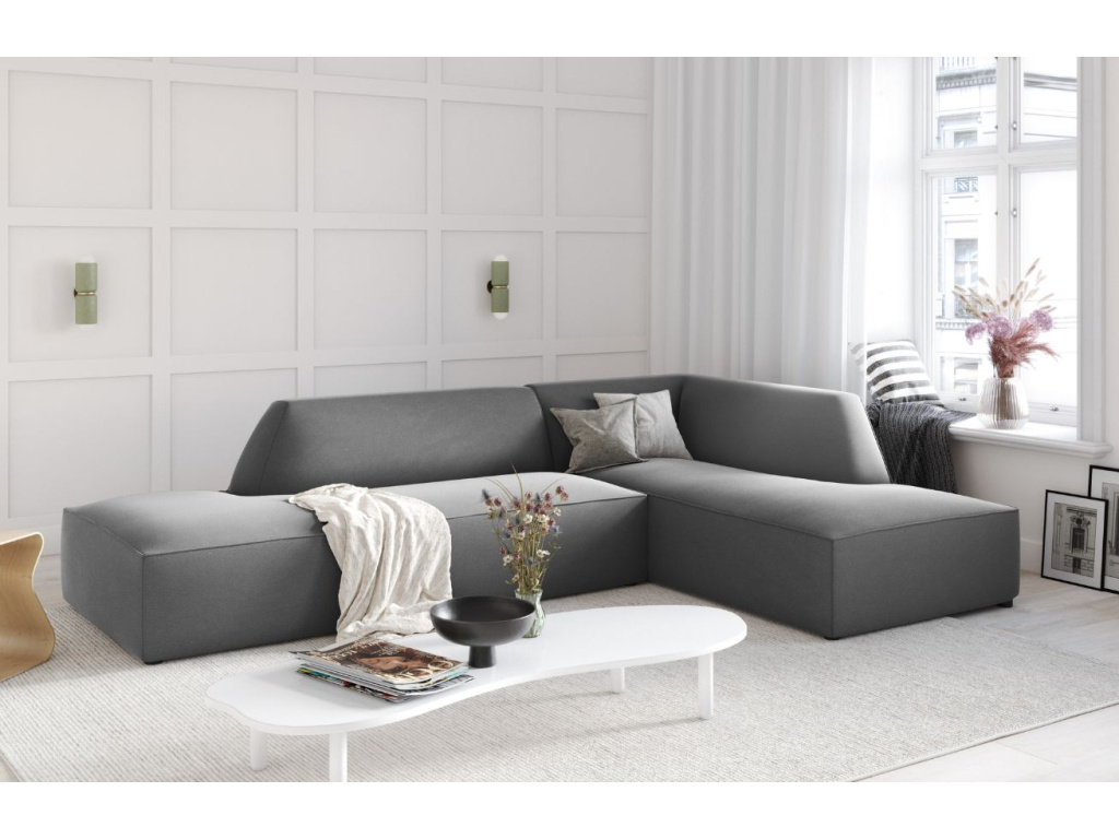 Rohová pohovka Ruby od společnosti Micadoni se stane příjemným doplňkem vašeho obývacího pokoje nebo společenské místnosti. Příjemné sametové čalounění s mírným leskem obsahuje ochranu, která zpomaluje absorpci tekutin – tekutina se shromažďuje na povrchu materiálu, aniž by pronikla hluboko do vláken. Díky tomu lze snadno odstranit rozlitou kávu nebo čaj během několika vteřin pomocí savého hadříku nebo papírové utěrky. Látka navíc prošla testem na cigarety, kdy je čalounění odolné proti tlení a vznícení. Kombinací různých modulů a velikostí pohovky si můžete vytvořit různé konfigurace sezení a získat si tak útulné posezení podle svých představ. Sezení Ruby doporučujeme spojit s jednoduchým konferenčním stolkem, na který můžete umístit svíčky, dekorace nebo občerstvení, a vytvořit tak jednoduchou, ale sofistikovanou skandinávskou obývací sestavu.