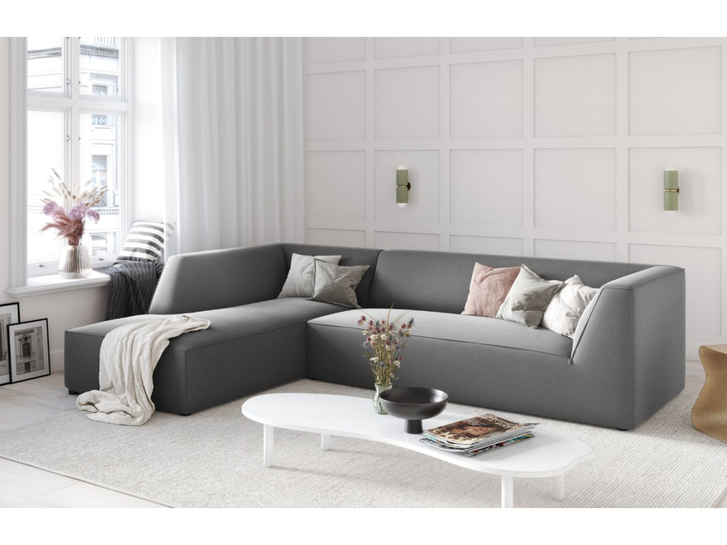 Rohová pohovka Ruby od společnosti Micadoni se stane příjemným doplňkem vašeho obývacího pokoje nebo společenské místnosti. Příjemné sametové čalounění s mírným leskem obsahuje ochranu, která zpomaluje absorpci tekutin – tekutina se shromažďuje na povrchu materiálu, aniž by pronikla hluboko do vláken. Díky tomu lze snadno odstranit rozlitou kávu nebo čaj během několika vteřin pomocí savého hadříku nebo papírové utěrky. Látka navíc prošla testem na cigarety, kdy je čalounění odolné proti tlení a vznícení. Kombinací různých modulů a velikostí pohovky si můžete vytvořit různé konfigurace sezení a získat si tak útulné posezení podle svých představ. Sezení Ruby doporučujeme spojit s jednoduchým konferenčním stolkem, na který můžete umístit svíčky, dekorace nebo občerstvení, a vytvořit tak jednoduchou, ale sofistikovanou skandinávskou obývací sestavu.