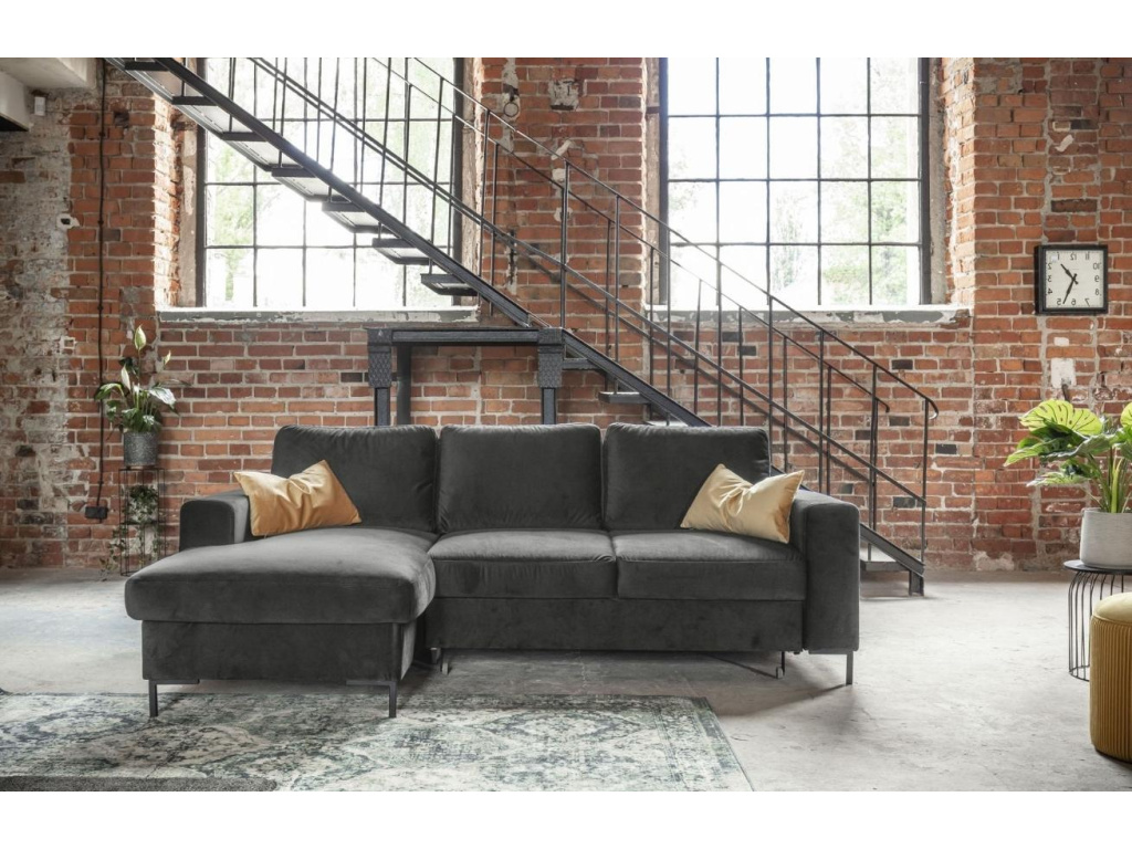 Rohová rozkládací pohovka Lofty Lilly od značky Miuform, spojuje funkčnost postele a pohovky v jednom nádherném designu. Lofty Lilly v sobě snoubí to nejlepší z obou světů, aniž by to bylo na úkor vzhledu a kvality. Krásné sametové čalounění v tmavě šedé barvě s elegantními, hladkými liniemi je skvělým doplňkem do moderní domácnosti. Tento výjimečný kus nábytku je vyroben tak, aby vyhovoval vašim potřebám a poskytl nejen pohodlné posezení, ale také ubytoval vaše hosty s další spací plochou jednoduchým vysunutím lůžka. Vyberte si i vy tu pravou z řady Lofty Lilly.