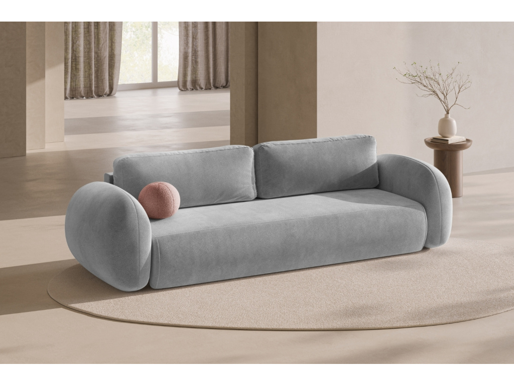 Šedá sametová rozkládací pohovka Kora 262 cm