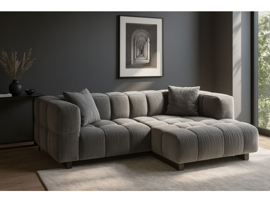 To chciŠedá sametová rozkládací pohovka Puma 260 cm, pravá