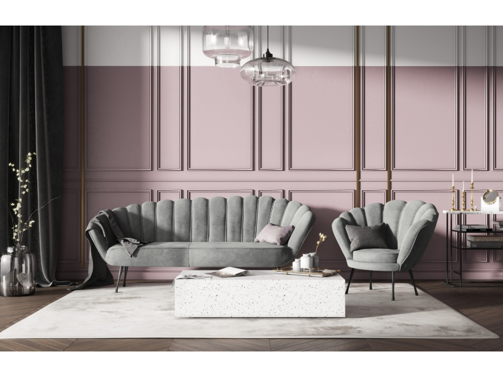 Třímístná pohovka Kingston značky Cosmopolitan Design se vyznačuje jemným prošíváním, které jí dodává elegantní a vzdušný vzhled. Jemně lesklé sametové čalounění v šedém odstínu je hebké a příjemné na dotek. Tkanina je velmi odolná proti oděru a absorpci tekutin, čímž zaručí dlouhodobé používání bez známek opotřebení. Celkový design pohovky doplňuje černě lakovaná kovová podnož. Pro dokonale sladěný sedací kout doporučujeme doplnit pohovku o křeslo ze stejnojmenné série. Pohovka je dostupná v 11 barevných provedeních, od šedých tónů až po výrazné a pestré barvy. Užijte si pohodlí a styl v jednom!