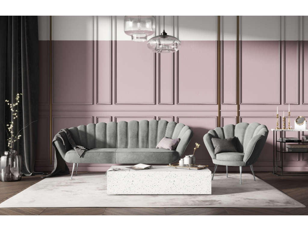 Třímístná pohovka Kingston značky Cosmopolitan Design se vyznačuje jemným prošíváním, které jí dodává elegantní a vzdušný vzhled. Jemně lesklé sametové čalounění v šedém odstínu je hebké a příjemné na dotek. Tkanina je velmi odolná proti oděru a absorpci tekutin, čímž zaručí dlouhodobé používání bez známek opotřebení. Celkový design pohovky doplňuje stříbrná kovová podnož. Pro dokonale sladěný sedací kout doporučujeme doplnit pohovku o křeslo ze stejnojmenné série. Pohovka je dostupná v 11 barevných provedeních, od šedých tónů až po výrazné a pestré barvy. Užijte si pohodlí a styl v jednom!