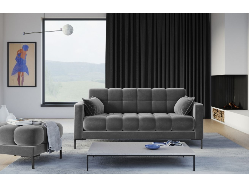 Elegantní třímístná pohovka MICADONI MAMAIA zaujme na první pohled svým nadýchaným vzhledem. Velmi příjemné sametové čalounění a kovová podnož vytváří kontrast, který interiéru dodá elegantní vzhled a nádech luxusu. Díky zajímavému prošívání vzniká jemný design, který do vašeho domova vnese lehkost a styl. Opěrné polštářky zvednou úroveň vašeho odpočinku o stupeň výš. Nechte se obklopit komfortem ve společnosti pohovky Mamaia.