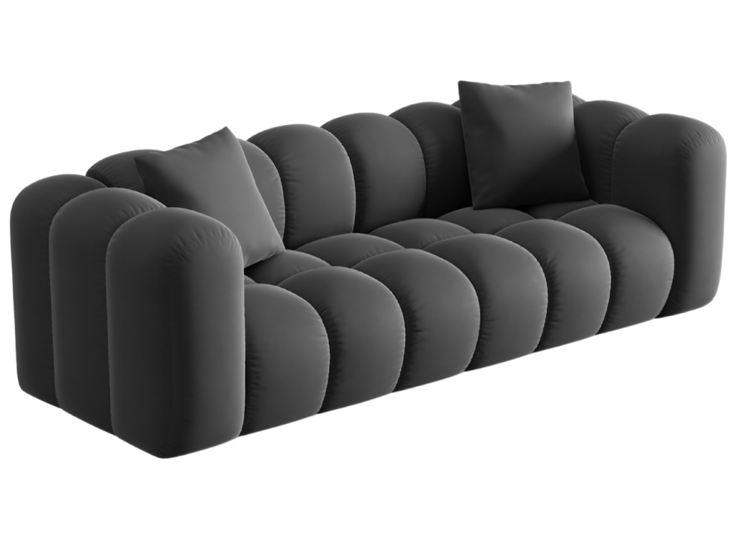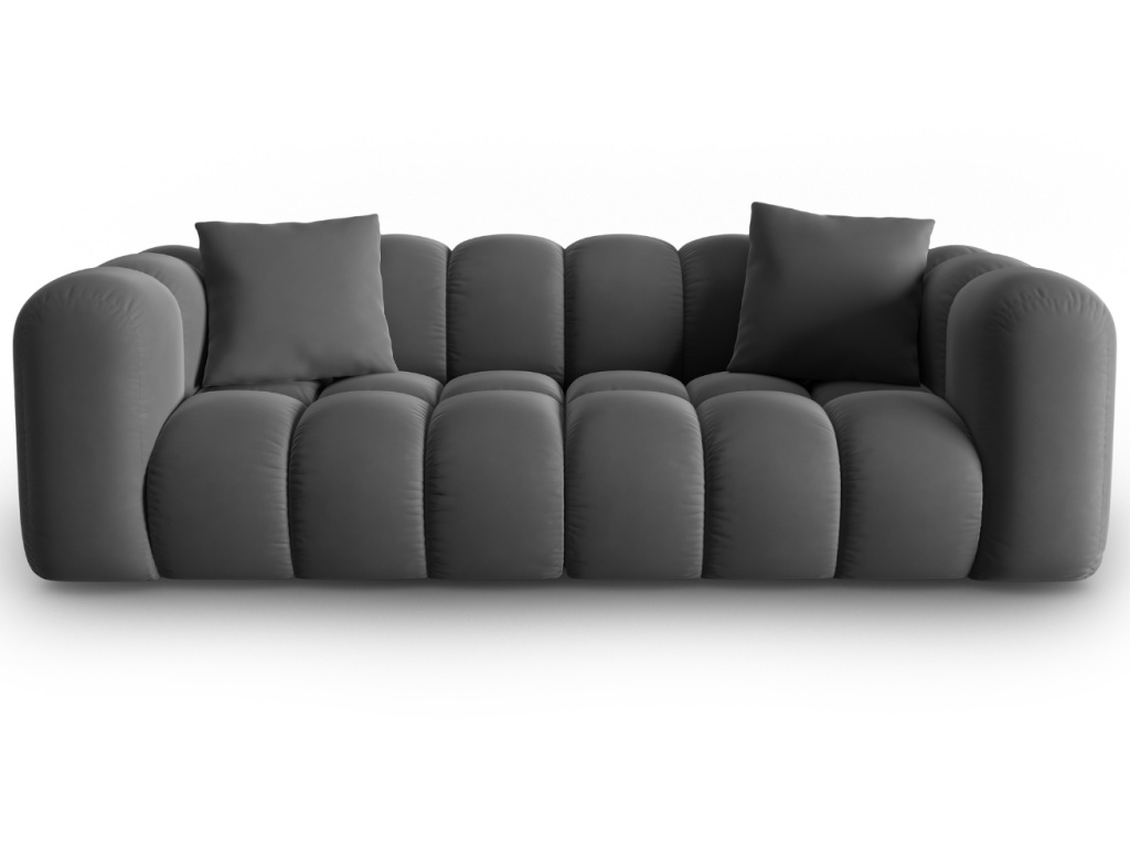Velkolepá třímístná pohovka Halley od značky Windsor & Co zaujme charakteristickým prošíváním. Bublinkové sedáky, opěradla a područky vybízejí k nespoutané relaxaci. Pohovka je čalouněná sametovou látkou s jemným leskem v šedém provedení, která je měkká a velice příjemná na dotek. Tkanina je velmi odolná proti oděru a absorpci tekutin, čímž zaručí dlouhodobé používání bez známek opotřebení. Látka navíc prošla cigaretovým testem, tudíž je odolná proti doutnání a vznícení. Tento skvostný kus nábytku nejen zaujme na první pohled, ale především zútulní váš interiér ve skandinávském nebo glamour stylu. Příjemným bonusem jsou elegantní polštářky, které doladí pohovku k dokonalosti. Pro sjednocení vašeho sedacího koutu doporučujeme pohovku doplnit také o podnožkou ze stejnojmenné série. Všechny produkty nabízíme v několika barvách. Odpočiňte si a relaxujte ve stylu!