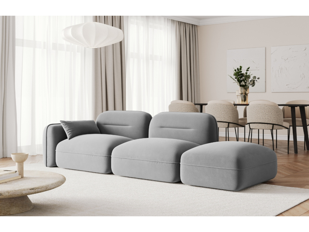Podívám seŠedá sametová trojmístná pohovka Sydney 295 cm, pravá