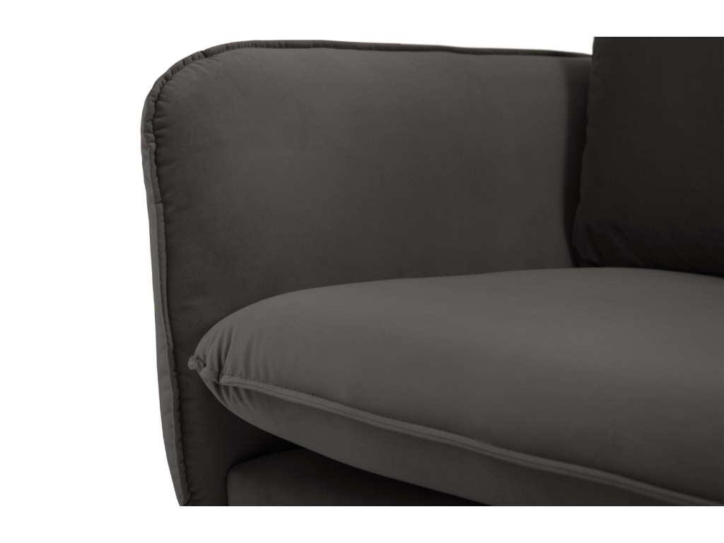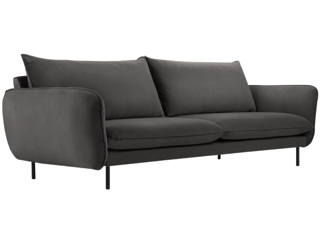 Pohovka Vienna od Cosmopolitan Design je poctou nadčasové eleganci, smyslu pro detail a dokonale vyváženým proporcím. Jemně tvarované opěrky, měkké polštáře a ladná silueta jí propůjčují lehkost, která zaujme na první pohled. Kontrastní černě lakovaná kovová podnož dodává celku vizuální vzdušnost a současně zajišťuje stabilitu. Luxusní sametový potah je nejen krásný na pohled, ale i příjemný na dotek – hladký, hebký a přirozeně elegantní. Na výběr je široká paleta pečlivě vybraných odstínů, které se snadno sladí s jemně minimalistickým interiérem i s odvážnějšími koncepty. Vienna vždy zapadne s lehkostí a zároveň dodá prostoru výraz. A protože každý domov má jiné potřeby, kolekce Vienna je k dispozici v několika velikostech – od kompaktních modelů ideálních do menších bytů až po velkorysé pohovky, na které se vejde celá rodina i s chlupatým parťákem.
