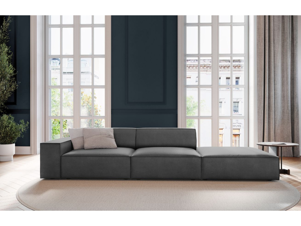 Prostorná modulární trojmístná pohovka Jodie od značky Micadoni zaujme svou krásnou siluetou. Čalounění je vyrobené z tkaniny, která imituje samet s jemným leskem. Látka se vyznačuje dobrou odolností proti oděru, což výrazně snižuje riziko jejího poškození, také prošla testem na cigarety, díky tomu je pohovka vhodná i do komerčních prostor. Její polstrovaný tvar vám zaručí plnohodnotný odpočinek, zatímco hluboký sedák umožní dokonalou relaxaci. Opřít se můžete také o tvarované opěráky a široké područky, které vybízejí k nespoutanému lenošení. Nízká podnož ladí s útulnou siluetou nábytku. Velký výběr modulů vám umožní vytvořit si kombinace, které budou nejlépe vyhovovat vašemu obývacímu pokoji v minimalistickém či skandinávském stylu.