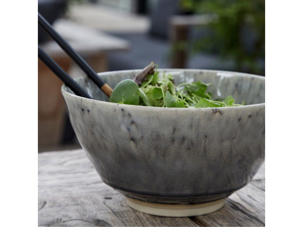 Elegantní šedá barva v plážovém pojetí na sebe vždy upoutá pozornost. Kameninová glazurovaná servírovací mísa s černým zdobením a popraskaným efektem působí starožitně, a přesto se bude skvěle vyjímat v moderní rekreační chatě ve venkovském či námořnickém stylu. Tradiční tvar mísy je zvýrazněn kontrastním zdobením ve spodní části.