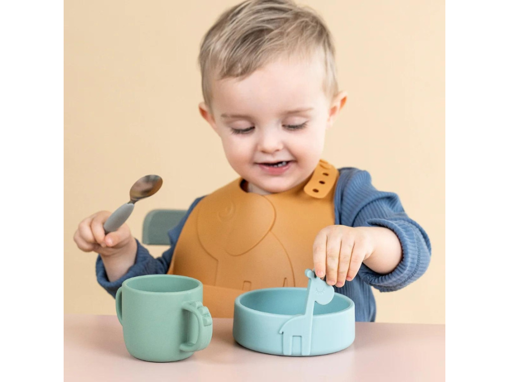 Nosorožec Nozo, hrošík Ozzo a slon Elphee budou doprovázet při jídle všechny malé jedlíky, kteří již se učí jíst samostatně. Zaoblené a jednoduché tvary umožní snadný úchop, a silikonový povrch zajistí, že jim příbor nebude vyklouzávat z rukou. K této sadě příborů z kolekce Deer friends můžete pořídit i další doplňky s roztomilými zvířátky, které najdete pod značkou Done by Deer. Sada obsahuje lžičku, vidličku a nůž.