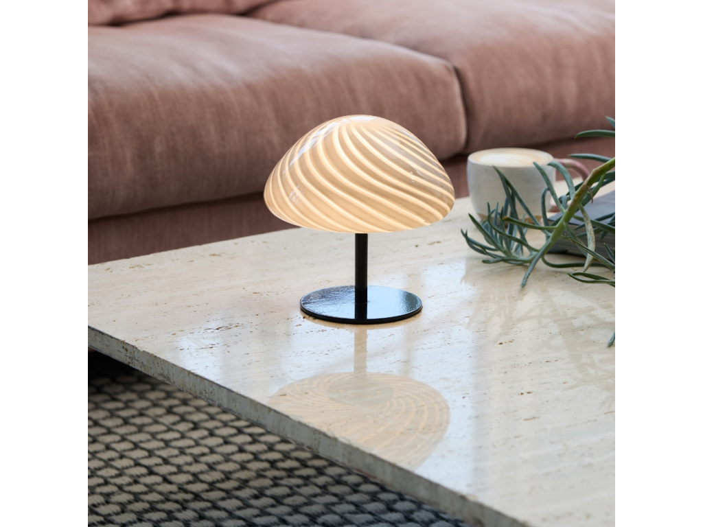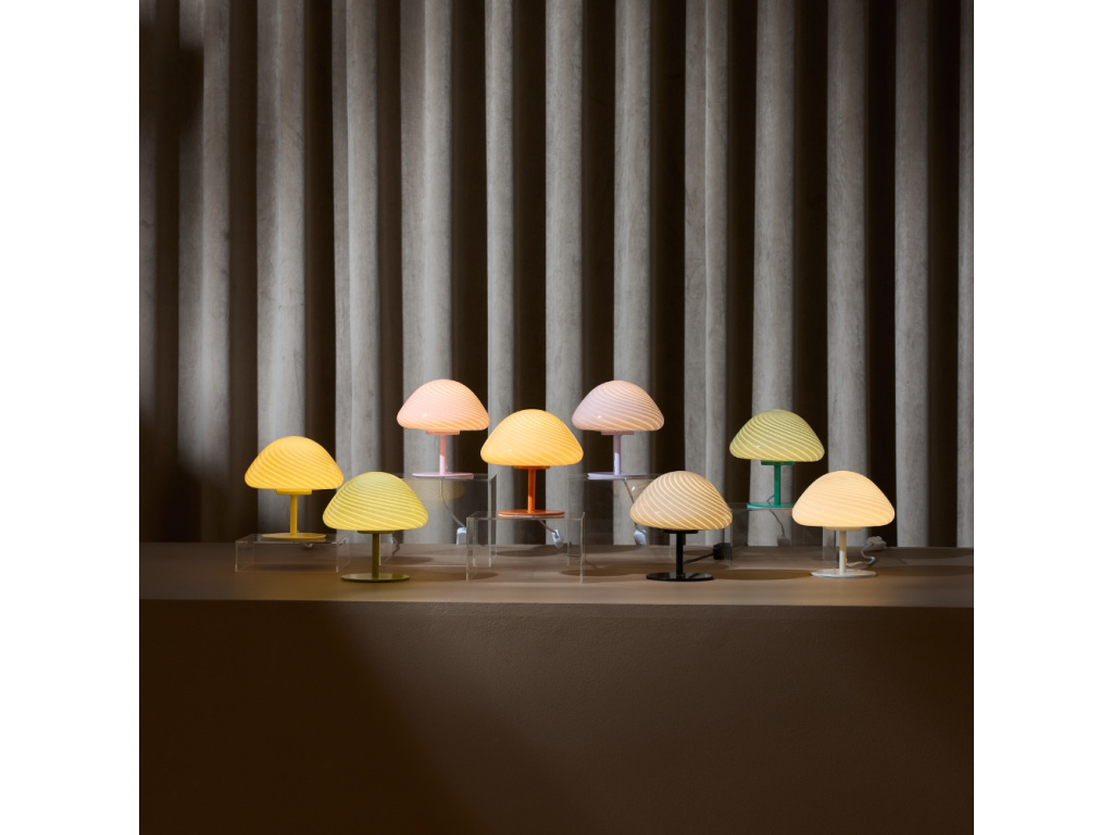 Kolekce stolních lamp Mini Mush od dánské značky Halo Design je důkazem, že i malý detail dokáže vykouzlit velkou proměnu. Navrhl ji designér Michael Waltersdorff, který se nechal inspirovat ikonickým tvarem hříbku a přetvořil jej do hravé, moderní podoby. Každá lampa je ručně foukaná a zdobená jemným krouceným vzorem ve skle, díky čemuž je každý kus naprostý originál. Mini Mush je dostupná v celé paletě zářivých barev, které působí optimisticky a hravě. Díky své kompaktní velikosti si najde místo prakticky kdekoli – na nočním stolku, pracovním stole, v dětském pokoji nebo v obývacím koutku, který si žádá nápaditý akcent. Kovová základna dokonale ladí s tónem stínidla a podtrhuje elegantní vzhled lampy. Stolní lampy Mini Mush nejsou jen zdrojem světla – jsou hravým designovým prvkem, který propojuje funkčnost, řemeslnou preciznost a radost z barev. Přidejte si do interiéru kousek, který vás bude těšit pokaždé, když jej rozsvítíte.