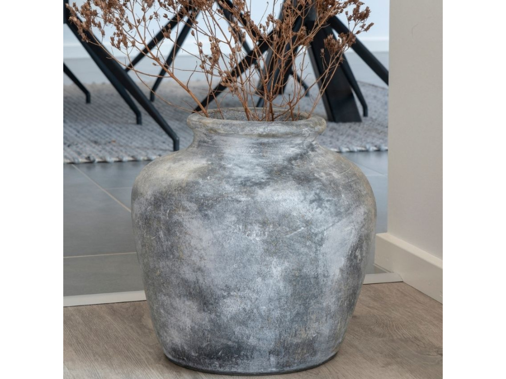 Dekorativní váza Samna zaujme svým šedým zbarvením, které vnese do interiéru nádech antiky. Váza je vyráběna ručně, proto je každý kousek originál a může docházet k drobným odlišnostem v barvě a tvaru. Díky svým velkým rozměrům se váza stane nepřehlédnutelnou ozdobou domova i komerčních prostor. Není vhodné do ní nalévat vodu, proto do ní umisťujte pouze květiny sušené nebo umělé.