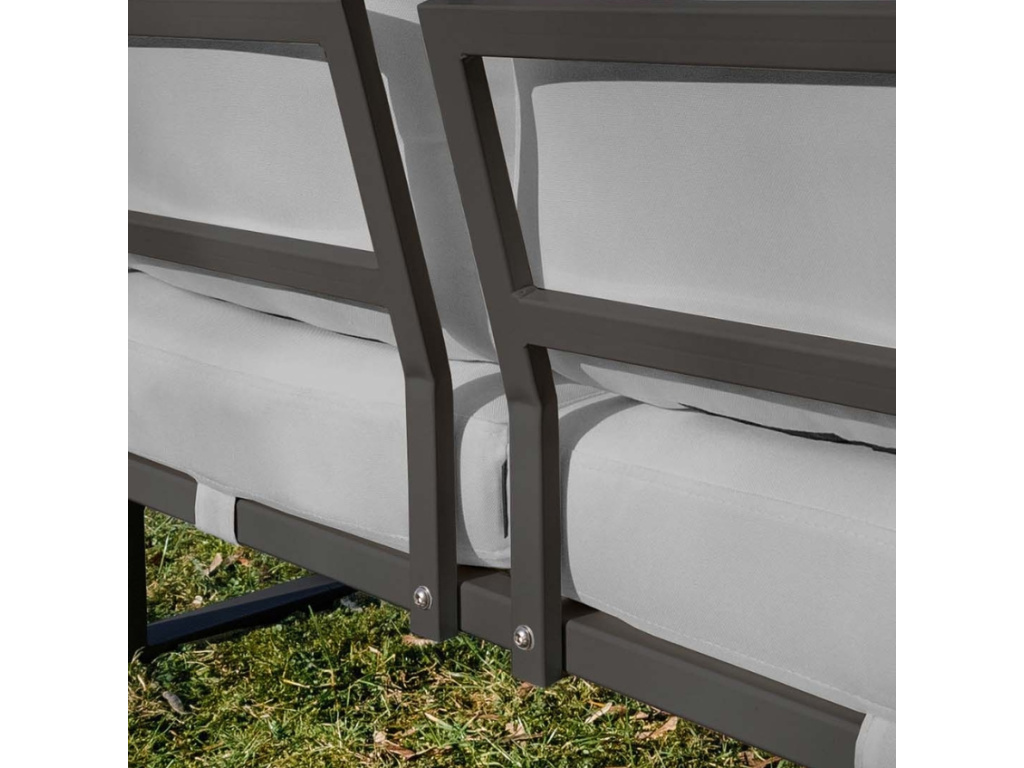 Zažijte nepřekonatelný komfort díky zahradní pohovce MESONICA Soledo z prémiového materiálu. Pohovka v nadčasové šedé barvě se pyšní pohodlným, vodoodpudivým sedákem, který si zachovává stálobarevnost. V kombinaci s kovovou, lakovanou podnoží odolnou proti korozi působí moderním a svěžím dojmem. Další výhodou čalouněné pohovky je, že se může pochlubit dlouhou životností, dá se snadno čistit, je ohnivzdorná a je dodávána se dvěma dekorativními polštáři. Zkombinujte pohovku i s dalšími produkty řady Soledo, která je dostupná s bílou nebo antracitovou podnoží a nabízí výběr čalounění z široké palety barev.