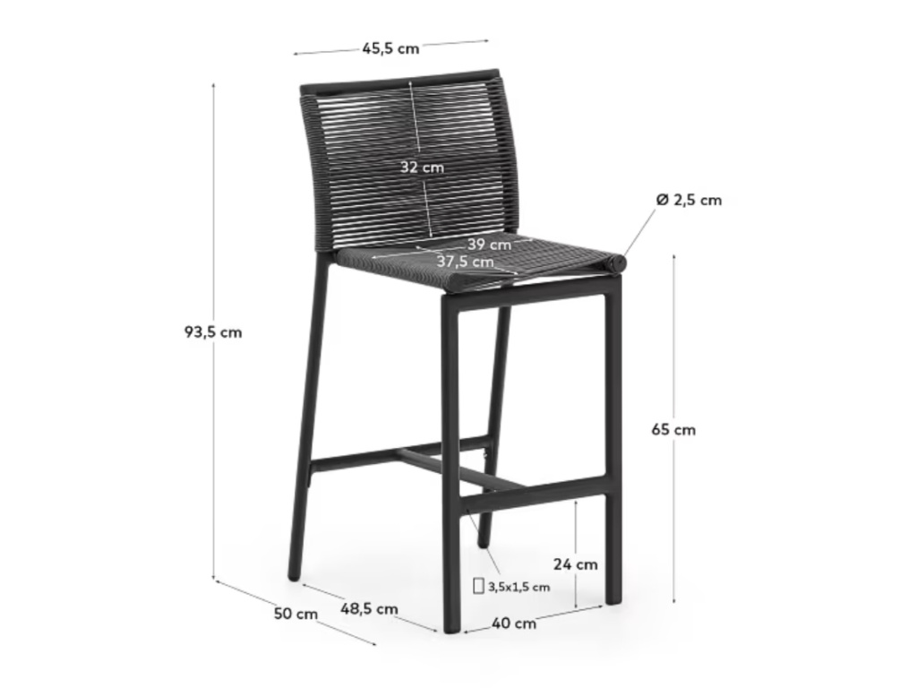 Zahradní barová židle Culip značky Kave Home má konstrukci vyrobenou z lakovaného hliníku. Tento lehký materiál je 100 % vhodný pro venkovní použití, je odolný vůči korozi a UV záření. Culip tak bude vaším společníkem na dlouhá léta, zažije s vámi nespočet grilovaček, oslav i rodinných setkání. Díky výpletu z pružného polyesterového lana vám navíc poskytne maximální pohodlí. V sérii Culip k ní najdete také další produkty, díky kterým můžete vytvořit dokonale sladěné zahradní posezení.