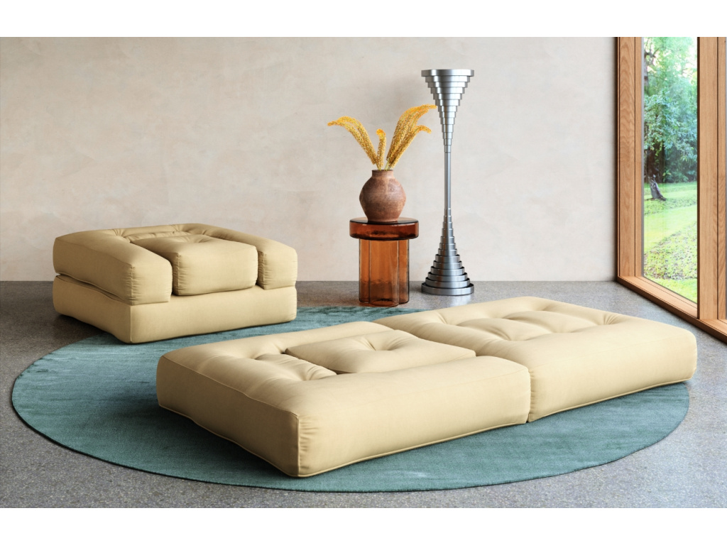 Dopřejte si zasloužený odpočinek v náručí křesla Cube. Jednoduchým překlopením křeslo proměníte na celkem tři tvary – křeslo s podnožkou, pohodlnou matraci nebo vysoký taburet. Futonové křeslo se pyšní kvalitním 75% bavlněným čalouněním, které je plněné pěnou z recyklovaných vláken. Variabilitu tohoto křesla oceníte především v menších interiérech, kde potřebujete ušetřit co nejvíce místa. Křeslo Cube se skvěle hodí do skandinávsky a minimalisticky laděných domovů a fantasticky zapadne nejen do obývacích pokojů, ale i ložnic či dětských pokojů. Vybrat si můžete z široké škály barev, které si pro vás připravil designér Joseph Willet. Tato designovka od dánské značky Karup Design rozhodně stojí za zvážení!