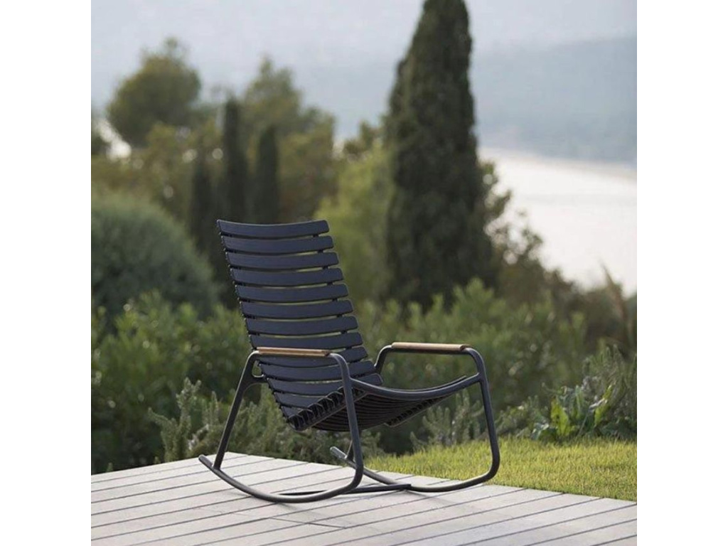 Zahradní houpací křeslo HOUE ReClips zaujme svým moderním vzhledem v severském stylu. Jeho sedák je vyrobený z plastových lamel z recyklovaného plastu a podnož z lakovaného hliníku. Společně vypadají skvěle a vytvářejí unikátní kousek nábytku, který je navíc i díky houpací funkci velice pohodlný. Područky z přírodně zbarveného bambusového dřeva dodávají křeslu na originalitě. Křeslo můžete umístit na terasu nebo pod pergolu, využití ale najde také v interiéru.