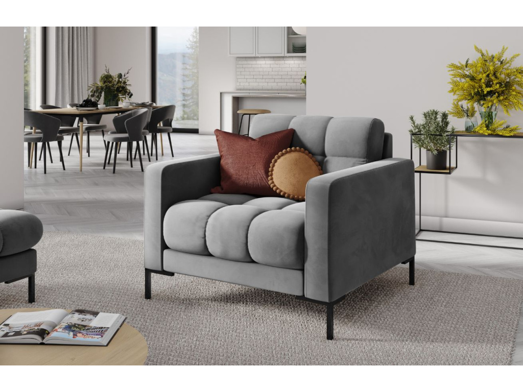 Chcete si krásně vybavit svůj domov? Křeslo Mamaia je pro to ideální volbou. Tento kus nábytku se vyznačuje jednoduchým, ale vkusným tvarem. Čalounění je vyrobeno z tkaniny imitující samet s jemným leskem, které je velmi měkké a hedvábné na dotek. Navíc se značí dobrou odolností proti oděru, díky tomu je vhodné i do komerčních prostor. Kromě estetických kvalit je křeslo také pozoruhodně pohodlné a ergonomické. Celek doplňují elegantní knoflíky na opěradle, které křeslu dodávají noblesu a stylové zakončení. Sezení je podtrženo kovovou, černě lakovanou podnoží. Mamaia je v nabídce v řadě barevném provedení. Vyberte si to pravé do vašeho interiéru!