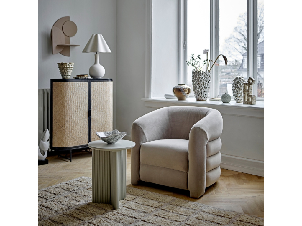 Zaoblené linie, sametový povrch a elegance, která nevyjde z módy – křeslo Joel je jako stvořené pro chvíle, kdy si chcete dopřát klid, pohodlí a krásu v jednom. Velkou předností křesla je jeho proporčně vyvážený tvar. Působí kompaktně, a přesto nabízí mimořádné pohodlí – ideální pro chvíle, kdy si chcete vychutnat kávu, ponořit se do knihy nebo si jednoduše na chvíli odpočinout. Joel od Bloomingville je víc než jen pohodlné křeslo – je to designový akcent, který spojuje estetickou lehkost, kvalitní provedení a každodenní komfort v dokonale vyvážené formě.