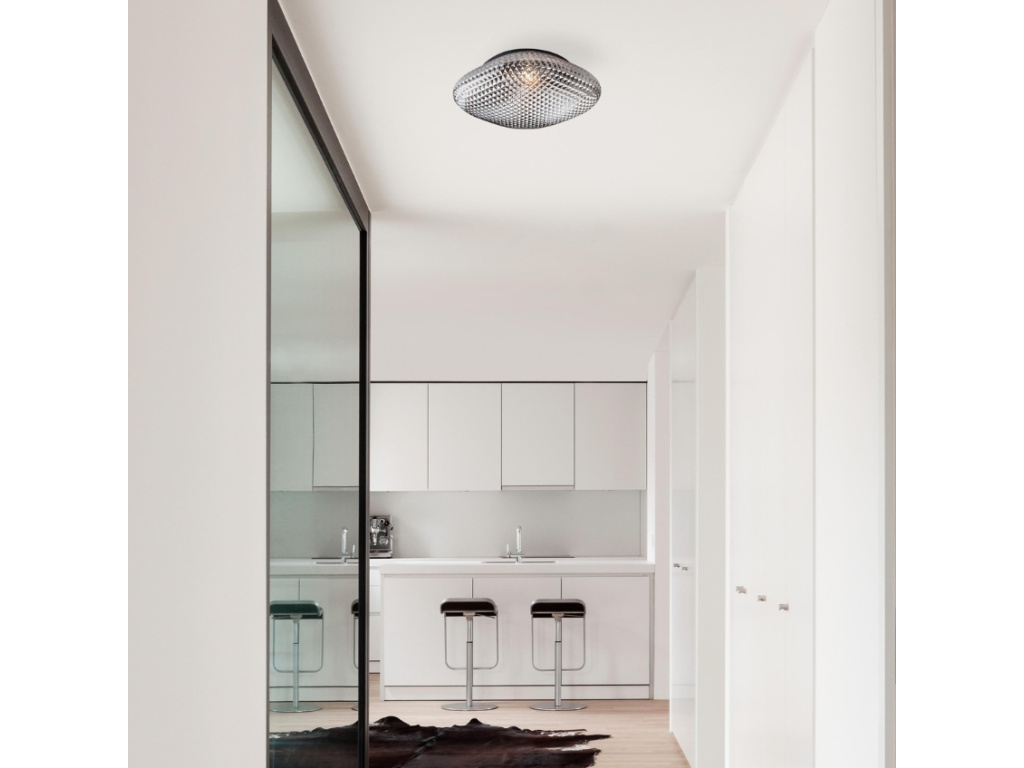 Potřebujete stylové a praktické osvětlení na chodbu či do předsíně? Pak to bude elegantní stropní světlo Sens od Nova Luce. Křehké skleněné stínidlo zdobí reliéfní povrch se čtvercovým vzorem, který celému kousku dodává lehký retro nádech a zároveň bude vytvářet příjemné rozptýlené světlo. Šedá barva stínidla pak dokonale ladí s černou kovovou základnou. Světlo se skvěle hodí do moderně, klasicky i retro laděných interiérů, kde mu to bude slušet v jakékoliv místnosti.