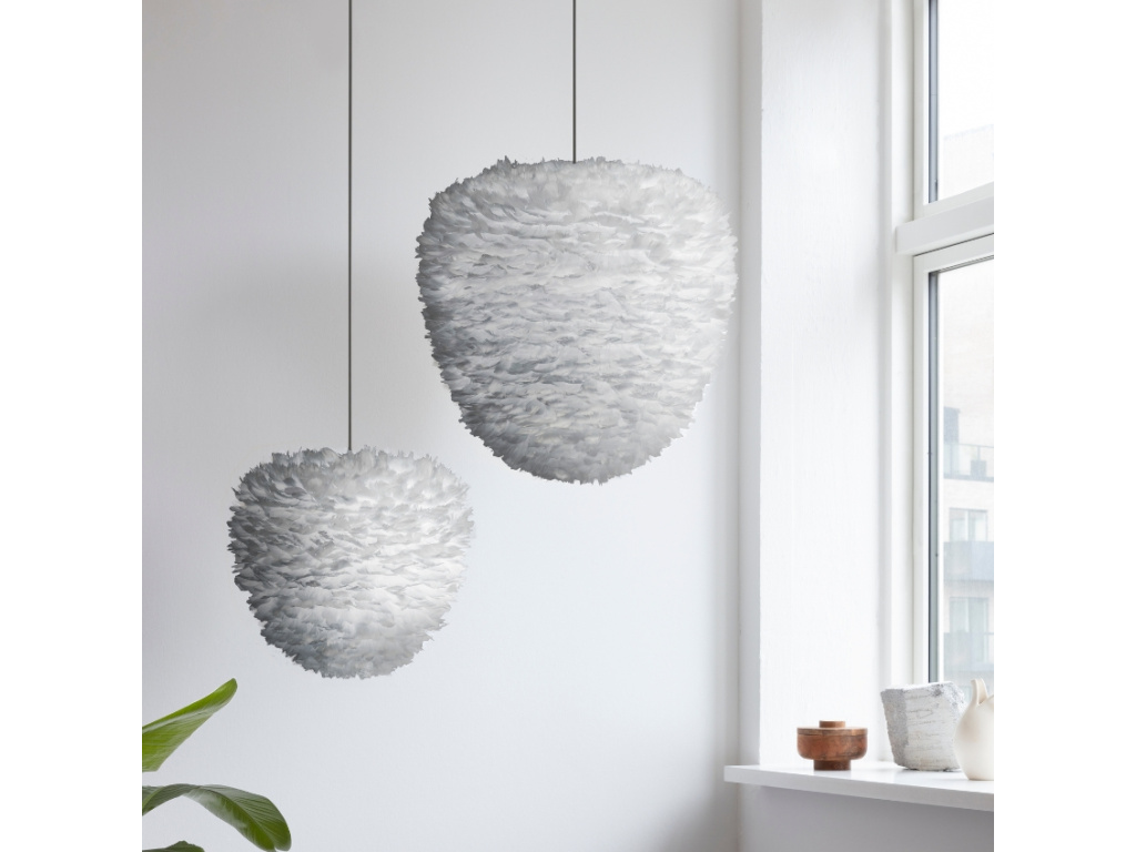 Závěsné stínidlo Eos Evia čerpá svou sílu a fascinující krásu z měkkého peří, které do domova vnáší hřejivou atmosféru. Toto jedinečné a ručně vyrobené stínidlo z čistě přírodního husího peří nabízí měkké, teplé světlo a dodá každému interiéru sofistikovaný a elegantní nádech. Eos je flexibilní stínidlo, které lze použít jako stojací, stolní nebo závěsnou lampu. Všechna stínidla Eos jsou k dispozici v neutrální a harmonické paletě barev pro vytvoření teplé a přívětivé atmosféry domova.