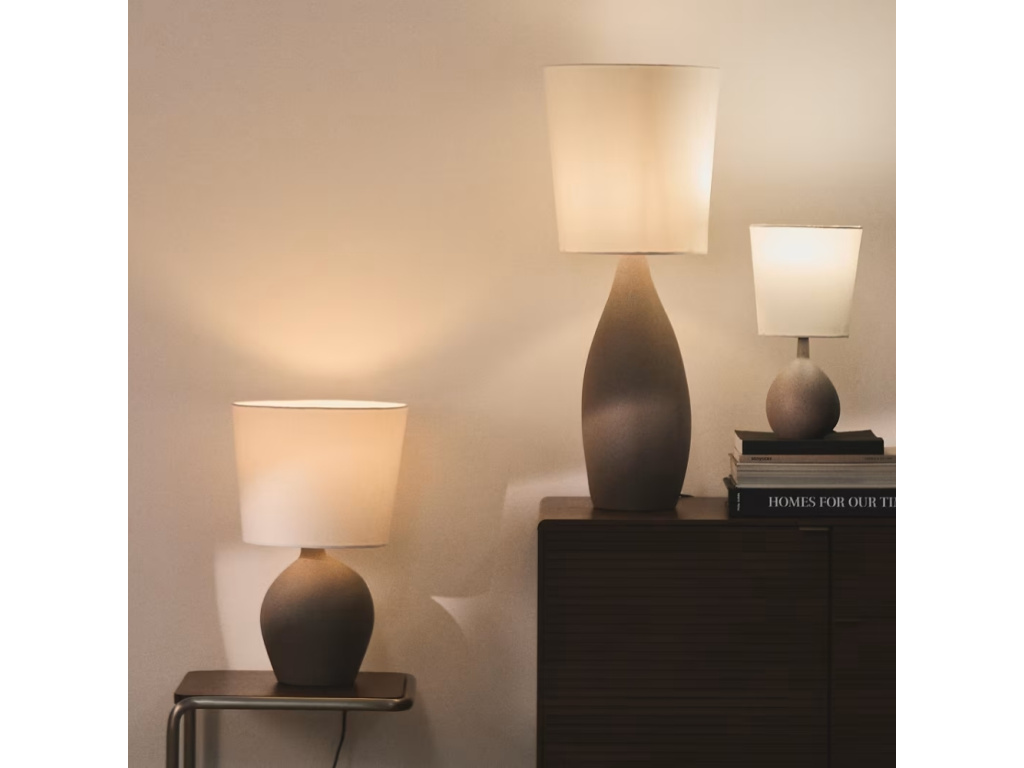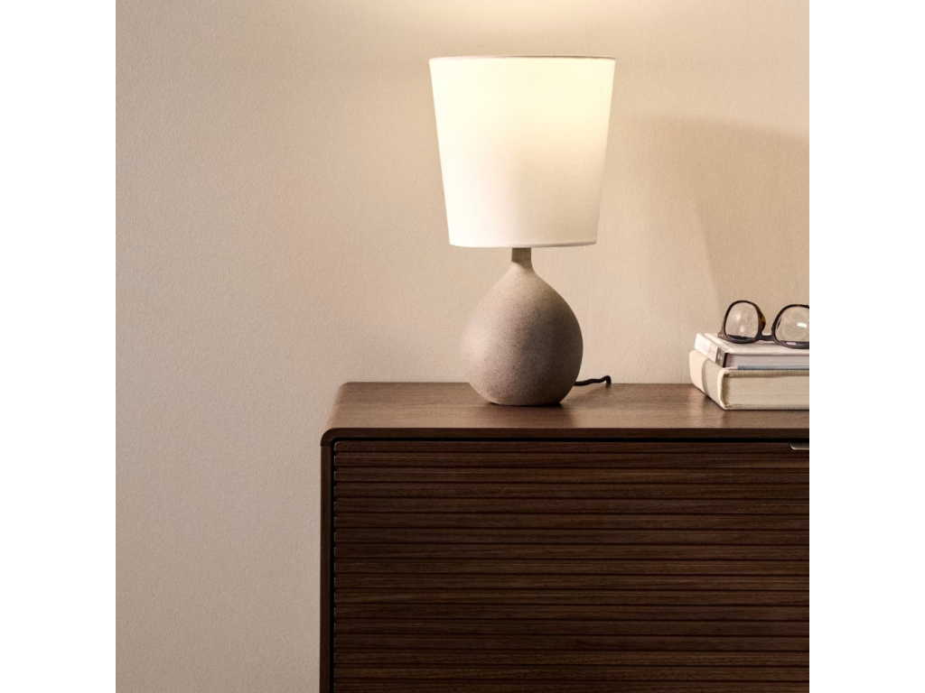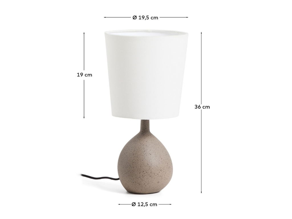 Stolní lampa Viona zaujme svým elegantním designem, díky kterému bude nejen zdrojem světla, ale i stylovým doplňkem. Její robustní kovová podstava s efektem kamene působí autenticky a přináší do interiéru přirozenou strukturu i charakter. Látkové stínidlo v barvě slonové kosti doplňuje základnu jemným kontrastem a rozptyluje světlo do teplého, uklidňujícího tónu. Díky svému vyváženému tvaru a nadčasové estetice se Viona skvěle hodí do ložnice, obývacího pokoje i pracovny – všude tam, kde má světlo vytvářet příjemnou a klidnou atmosféru. Dostupná je ve třech různých velikostech, které lze kombinovat pro vytvoření elegantní světelné kompozice.