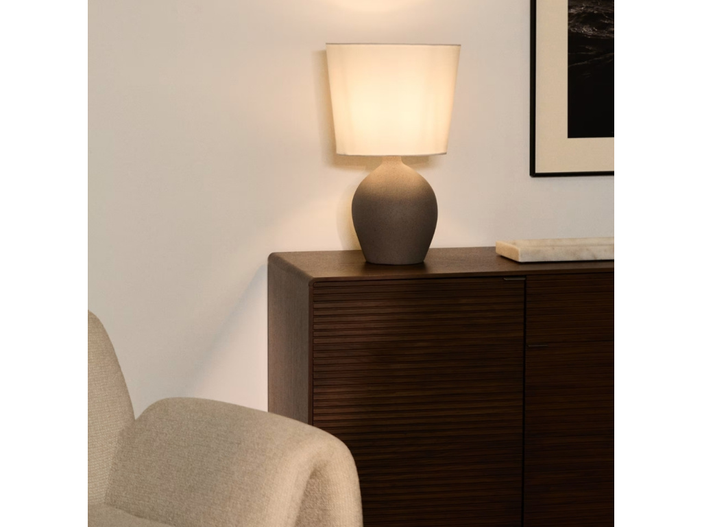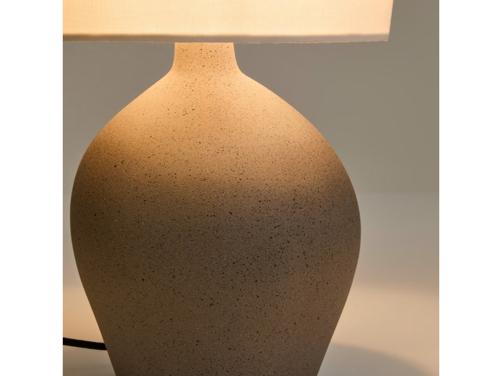 Stolní lampa Viona zaujme svým elegantním designem, díky kterému bude nejen zdrojem světla, ale i stylovým doplňkem. Její robustní kovová podstava s efektem kamene působí autenticky a přináší do interiéru přirozenou strukturu i charakter. Látkové stínidlo v barvě slonové kosti doplňuje základnu jemným kontrastem a rozptyluje světlo do teplého, uklidňujícího tónu. Díky svému vyváženému tvaru a nadčasové estetice se Viona skvěle hodí do ložnice, obývacího pokoje i pracovny – všude tam, kde má světlo vytvářet příjemnou a klidnou atmosféru. Dostupná je ve třech různých velikostech, které lze kombinovat pro vytvoření elegantní světelné kompozice.
