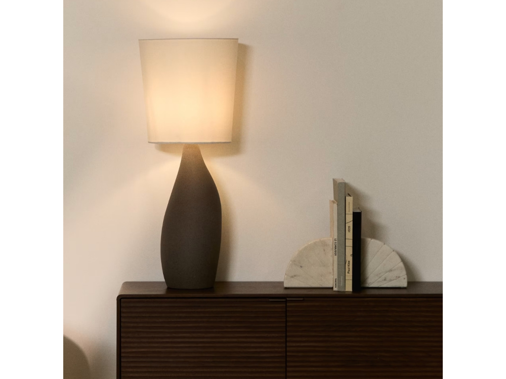 Stolní lampa Viona zaujme svým elegantním designem, díky kterému bude nejen zdrojem světla, ale i stylovým doplňkem. Její robustní kovová podstava s efektem kamene působí autenticky a přináší do interiéru přirozenou strukturu i charakter. Látkové stínidlo v barvě slonové kosti doplňuje základnu jemným kontrastem a rozptyluje světlo do teplého, uklidňujícího tónu. Díky svému vyváženému tvaru a nadčasové estetice se Viona skvěle hodí do ložnice, obývacího pokoje i pracovny – všude tam, kde má světlo vytvářet příjemnou a klidnou atmosféru. Dostupná je ve třech různých velikostech, které lze kombinovat pro vytvoření elegantní světelné kompozice.