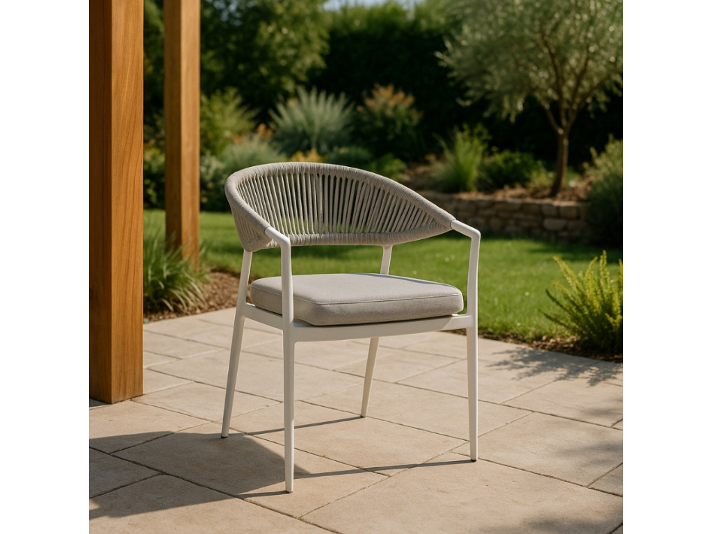 Židle Millor přináší stylový design, který zkrášlí váš venkovní prostor. Pevný hliníkový rám s kvalitní práškovou úpravou zajistí dlouhou životnost a odolnost proti nepříznivému počasí, zatímco elegantní výplet z polyesterového lana podtrhne její lehkost a moderní charakter. Komfort při sezení zajistí měkké polštáře z voděodolného polyesteru, které lze snadno vyjmout. Díky stohovatelné konstrukci nebude problém židle uskladnit, když je nebudete potřebovat. Skvěle se hodí do venkovních jídelních koutů, kde vytvoří harmonické a vzdušné posezení.