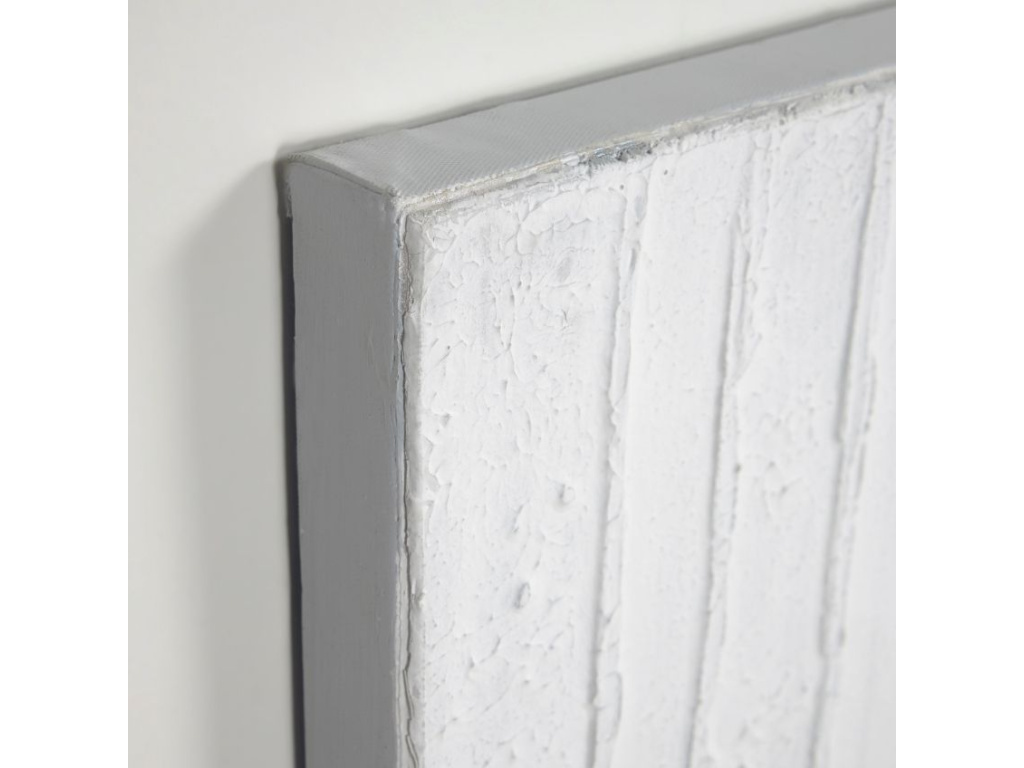 Kave Home Basilisa je obraz na plátně o rozměrech 90 x 90 cm, na kterém najdete ručně vyrobené textury a reliéfní vzory. Skvěle bude vypadat pověšený na zdi i opřený o nábytek. Obraz svým šedo bílým zbarvením zapadne především do světlejších interiérů. Umístit ho můžete kamkoliv - do obývacího pokoje, předsíně i ložnice.