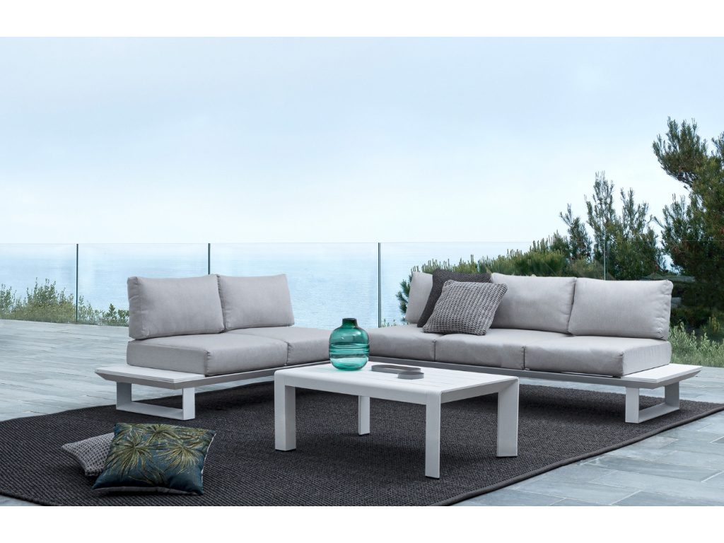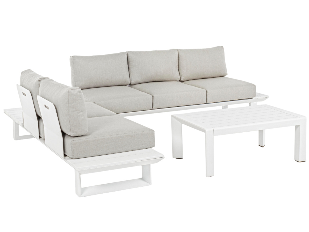 Zahradní set Konnor si oblíbíte pro jeho moderní a minimalistický design. Set se skládá z konferenčního stolku a dvou pohovek – dvoumístné a trojmístné. Pohovky mají bytelnou kovovou podnož i konstrukci a měkké sedáky s látkovým čalouněním. Potah sedáku je možné v případě potřeby sundat. Na designu pohovky oceníte šikovné vestavěné boční stolky pro odložení drobností nebo nápojů. Konferenční stolek je celý kovový a ve stejném odstínu jako pohovky a doplňuje celý set Konnor.
