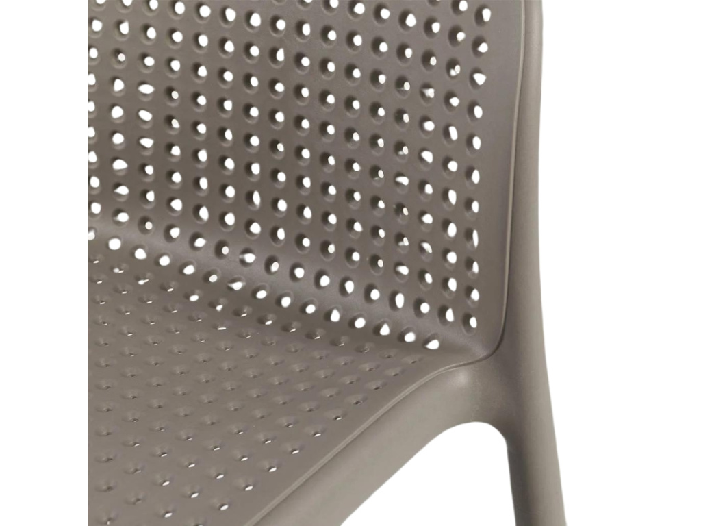Lido Mini je stylová barová židle v šedo hnědé barvě a je skvělou volbou do všech kuchyní či barů, a to i těch venkovních. Celá židle je vyrobena z odolného polypropylenu, který je vyztužený skelným vláknem. Při použití na vaší terase či zahradě oceníte prodyšný děrovaný styl sedáku, vysokou odolnost proti UV záření a protiskluzovou podnož. Židle jsou stohovatelné, což jistě přijde vhod při jejich úklidu. Barová židle Lido bude krásným doplňkem i hotelových a restauračních prostor.