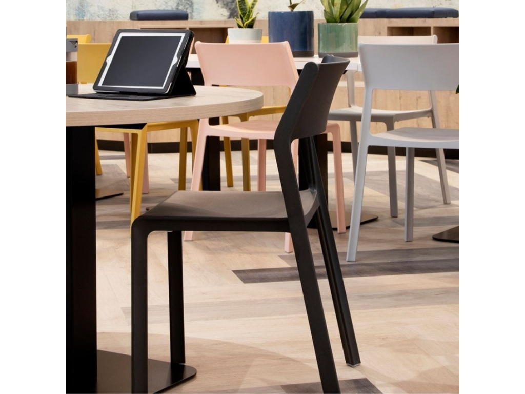 Stylová jídelní židle Trill zaujme na první pohled svým jednoduchým designem. Je vyrobena z odolného a lehkého polypropylenu, který je vyztužený skelným vláknem s vysokou odolností proti UV záření, díky čemuž se židle stává ideálním prvkem do venkovního prostředí. Její nadčasový design se bude skvěle hodit nejen na zahrady, ale také do komerčních prostor. Židle je k dispozici v několika barevných variantách a můžete ji doplnit barovými židlemi, židlemi s područkami nebo podsedákem ze stejnojmenné série.
