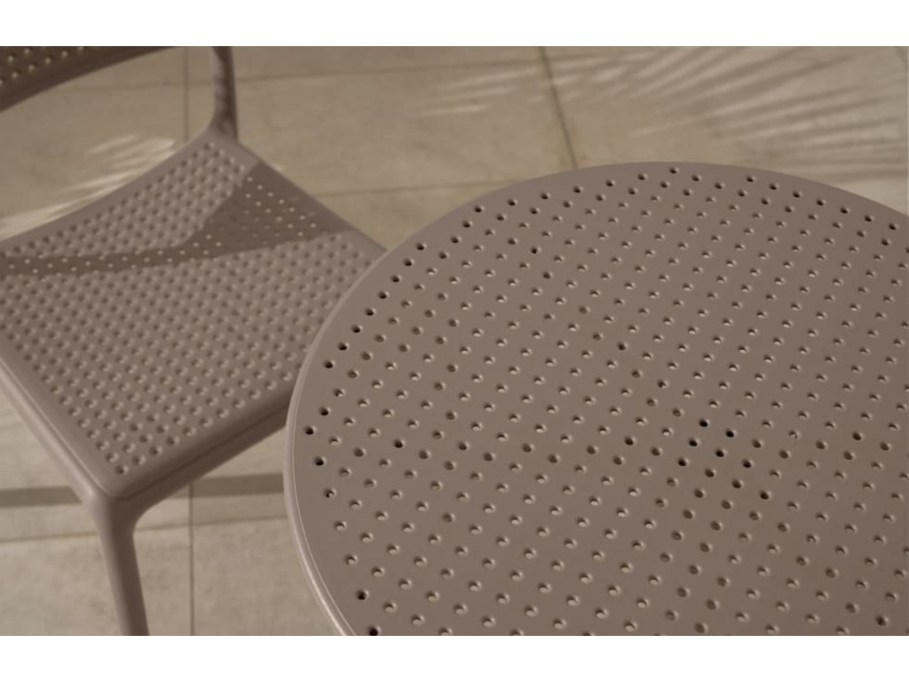 Šedo hnědý zahradní stolek Step oceníte pro jeho široké možnosti využití na vaší terase i balkónu. Nespornou předností jsou dvě možnosti výškového nastavení, a to buď na 76,5 cm nebo 40 cm, díky čemuž si stolek můžete přizpůsobit na konferenční nebo odkládací. Podnož je z polykarbonátu, který je vyztužený skelným vláknem s vysokou odolností proti UV záření. Podnož je navíc vybavená i protiskluzovými nožičkami, a tak se na stolek můžete skutečně spolehnout. Deska je ze stejného materiálu s proděravělým vzorem, což přijde vhod pro rychlé uschnutí stolku či odvedení vody.
