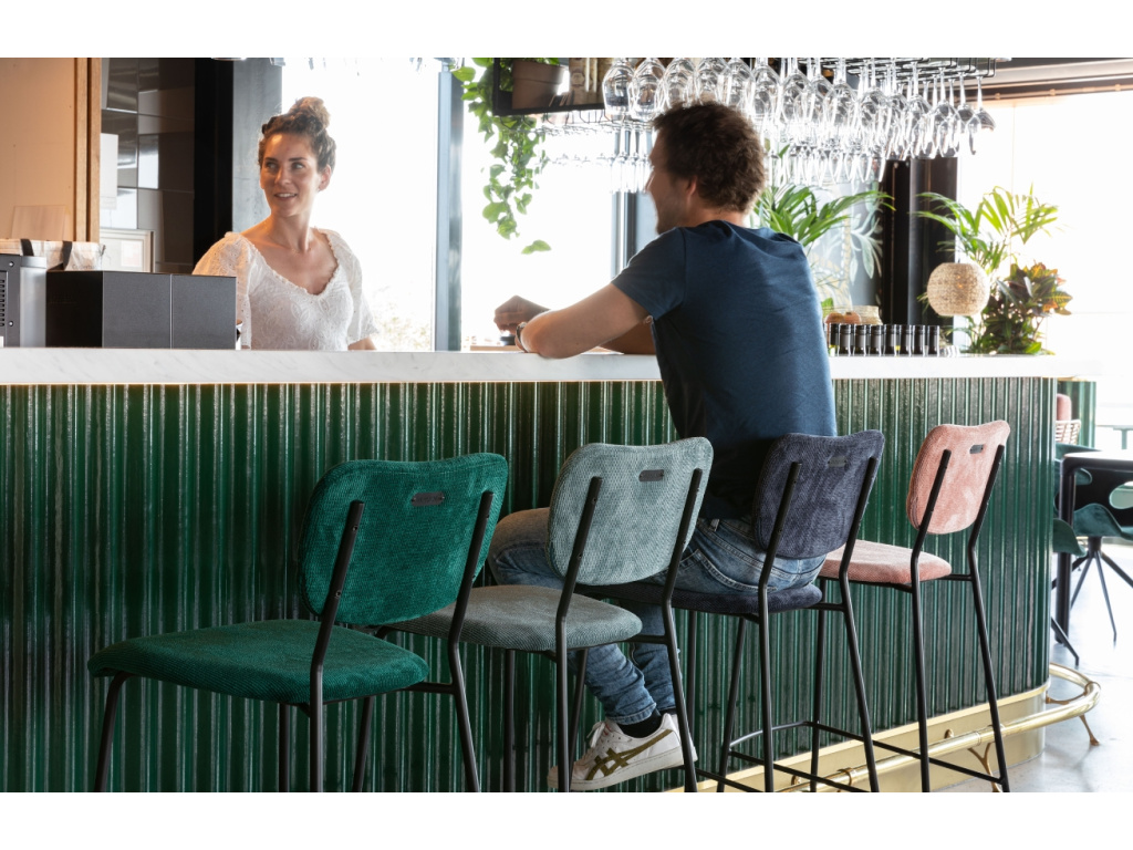 V barové židli BENSON od značky ZUIVER najdete elegantní design i pohodlné sezení. Tato židle s lehkým nádechem retra bude perfektním designovým kouskem do vaší kuchyně i veřejných prostorů kaváren a barů. Židle vás usadí do pohodlného sedáku s opěradlem, které je čalouněno měkkou manšestrovou tkaninou. Stabilitu židli dodá práškově lakovaný ocelový rám, který je zakončen rozšířenou podnoží, což dodává židli na originalitě. Židle se skvěle hodí do moderního i retro laděného interiéru.