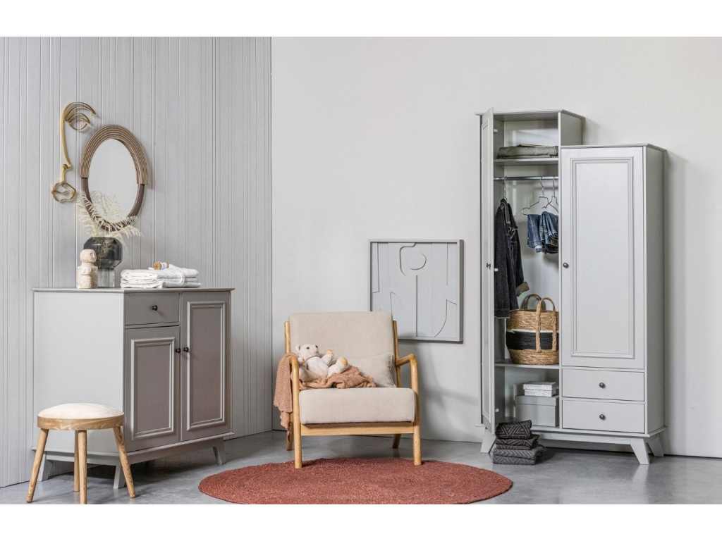 Komoda Wilcox zaujme svým moderním a svěžím stylem. Celá komoda je vyrobena z masivního borovicového dřeva v zajímavém šedo zeleném barevném odstínu. Dřevo použité na výrobu postele navíc disponuje certifikátem FSC, kterým je označené ekologické a k přírodě šetrné zpracování dřeva. Úložný prostor je rozčleněn na menší zásuvku a pět polic za dvířky. To poskytuje dostatek místa pro uklizení oblečení a hraček. Díky nadčasovému designu se komoda bude hodit do většiny stylů ložnic nebo dětských pokojů.