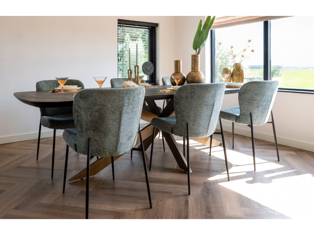 Jídelní židle Richmond Odessa s látkovým čalouněním a černě zbarvenou kovovou podnoží vnese do jídelny eleganci. Použitá látka je velice příjemná na dotek a díky tvarovanému sedáku je i sezení na židli velice příjemné a pohodlné.