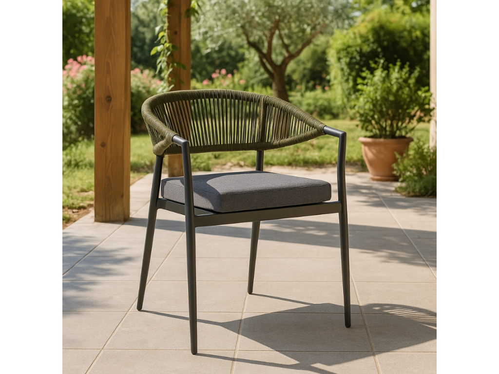 Židle Millor přináší stylový design, který zkrášlí váš venkovní prostor. Pevný hliníkový rám s kvalitní práškovou úpravou zajistí dlouhou životnost a odolnost proti nepříznivému počasí, zatímco elegantní výplet z polyesterového lana podtrhne její lehkost a moderní charakter. Komfort při sezení zajistí měkké polštáře z voděodolného polyesteru, které lze snadno vyjmout. Díky stohovatelné konstrukci nebude problém židle uskladnit, když je nebudete potřebovat. Skvěle se hodí do venkovních jídelních koutů, kde vytvoří harmonické a vzdušné posezení.